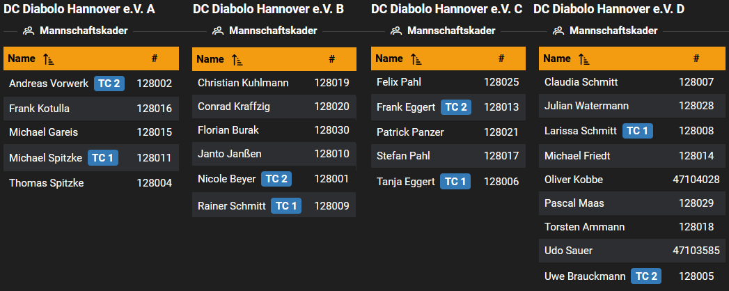 Hier ein Überblick über die Teams